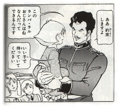 先月号から始まったセイラさんロリータバージョン強化月間ですが、今月も可愛いセイラさんのオンパレードです。ちなみに先月号では分からなかったセイラさんの愛猫は・・・ルシファー・・・もうちょっとひねって欲しかったです。ま、後半でランバ・ラルが、顔中に怪我を負った辺りでルシファーのルシファーたる所以がちょっと発揮されてますが・・・。5歳のセイラさんは、深刻になりがちな避難生活において、周りの癒しになっていること間違いなしですね(笑)で、上のシーンは、ガンダム本編でも一瞬だけ描かれていたシーンですね。安っさんは、コニクイ事をやってくれます。あのシーンは、ルシファー救出作戦の前の記憶なのですね?(笑)そりゃあ、セイラさんにキスされたらずぅ〜〜〜っと、記憶に強く残るよね!!(笑) てか、セイラさんのファーストキスの相手は、ランバ・ラルだったのか・・・(汗) しかし・・・ドズル・・・死んでるだろ?(笑)ま、ロキみたいなもんですかね?(笑) 今号と先号で、ラル家とザビ家の確執がどのように生じていったかがよく分かると同時に、ジオンというのが貴族制度を取り入れていた、もしくは貴族的になっていったことがよく分かります。 そして、シャア・・・てか、キャスバル。あんな小さな時からシャア・・・てか、キャスバルだったんですね?で、あれが、キシリアの言う所の『キャスバル坊やと遊んであげたことも・・・』ですか?(笑)(いえいえ、それはシャア・・・じゃなくってっきゃすばるが3歳の時ですね) |