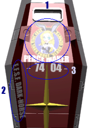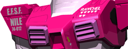 右肩)連邦宇宙軍『ナイル』所属74戦隊012号機 左胸)個人名とハートによる撃墜マーク〔7機) |