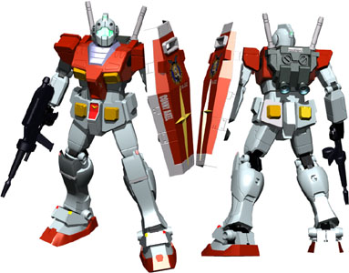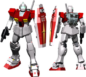 教育型コンピューターの撤廃には、賛否両論があったが、そのシステム自体が高価であったことや、現実的な回収の可能性の低さ(シミュレートによるA型ジムの戦闘撃破におけるコア・ブロックの回収率は7%以下)を考慮して撤廃された。その代わりに1戦闘毎のデータは、プログラム処理されたうえで更新され、最新の戦闘データを交えた操縦アルゴリズムを1戦闘毎に再インストールして対処することとした。 しかし、実戦になってみるとジムの生存性の高さは、当初の危惧を杞憂だったと言わざるをえない状況を見せた。このためA型機の実戦データは、初期の段階から豊富に蓄積することが出来たし、また、試作機のRX−78−2のパイロットから有り余るほどのデータを収集できた。戦争後期のジムを、最強の量産機たりえるものにするのに、これらのデータは有り余る貢献をしたことはあまりにも有名である。 本機は、終戦までにマイナーバリエーションも含めるなら、実に1200機以上が生産され、オデッサ作戦において初めて組織的に戦線に投入され本作戦を成功させるにあたって多大な貢献をした。以降終戦まで連邦軍の反攻作戦の主戦力として大活躍をした。 |
