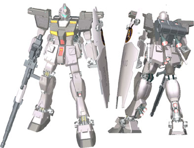 S型のジムに、マグネットコーティングを施したニュータイプ・パイロット専用機。7機が、終戦までに生産されたが、戦後、ニュータイプの存在を公には認めなかった連邦軍の政策上、この機体も量産されることはなかった。また機体自体もマグネットコーティングが施されているというだけで、ジオン軍が採用したサイコミュのようなニュータイプの能力を活用するようなものは、全く装備していない。 また、これらの機隊に搭乗するべきニュータイプ能力を備えたパイロットも連邦軍には、(公式的には)存在しなかったことも確かである。 |