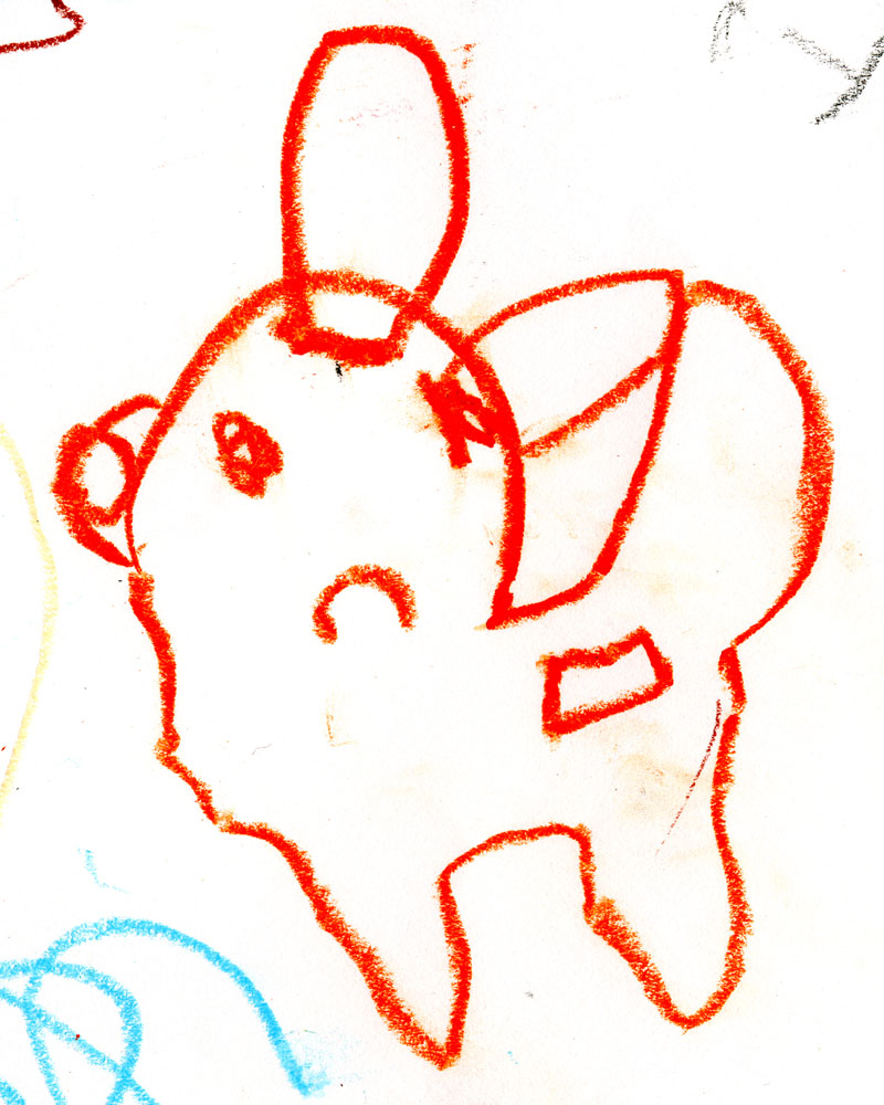 クレヨンで描いたいぬ!驚愕すべきことに身体の各部分の特徴が完璧までに模写されている!!真横から観察したことによって脚は2本しか描かれていないが写実派の画伯としては当然のことか? 2007年2月1日作 |