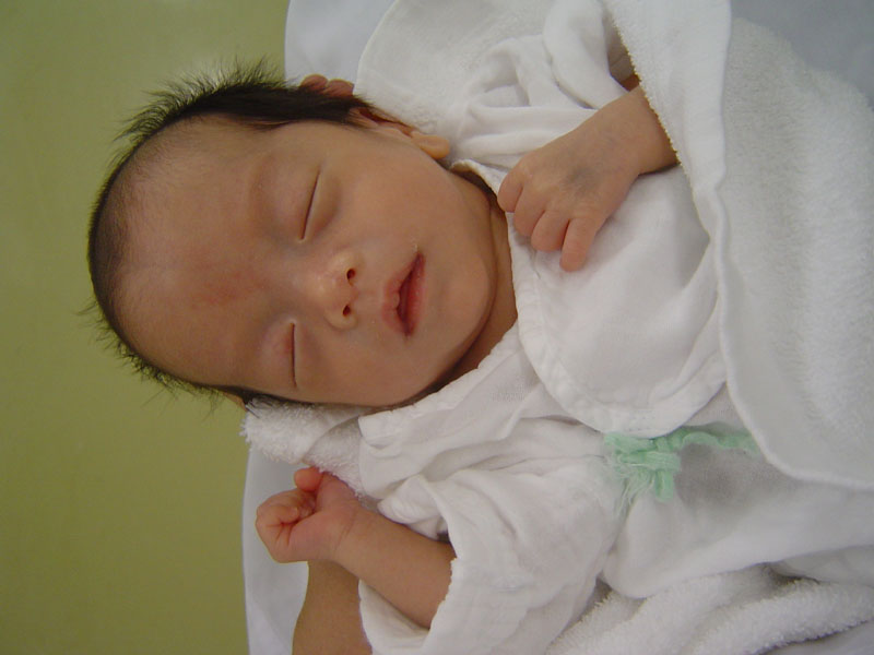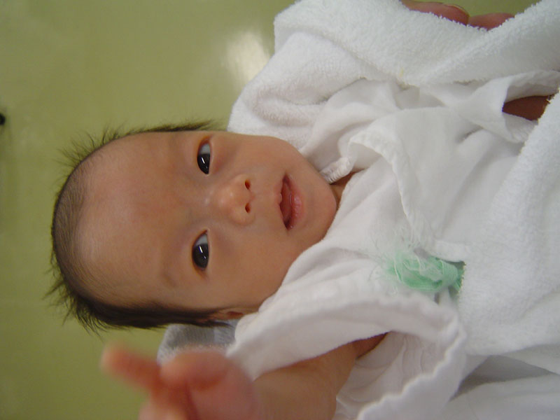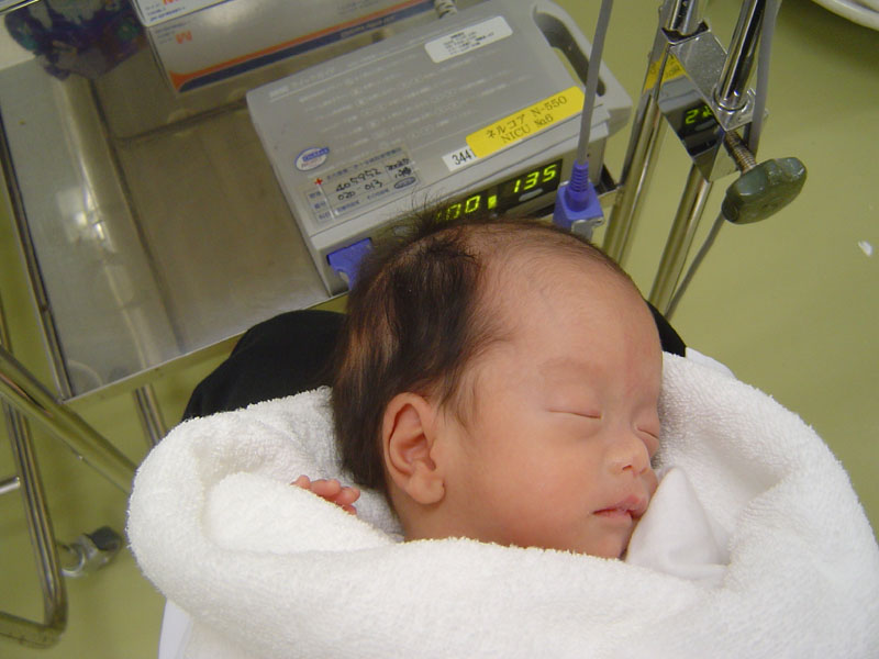 母乳量は、90ccでフリーに。著変なし。退院前の検査、CTやらMRやら・・・結果は、後日。初めて直母乳で明らかに体重が増える。6cc。