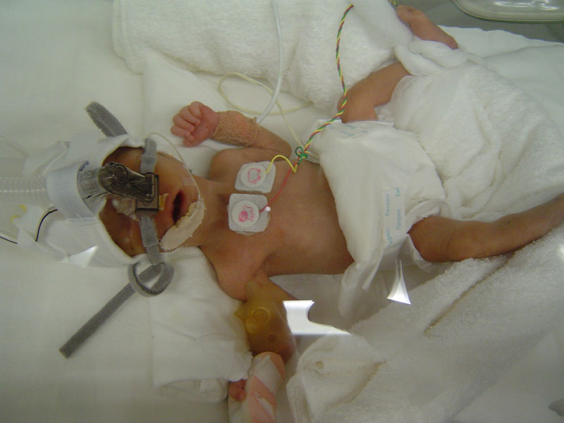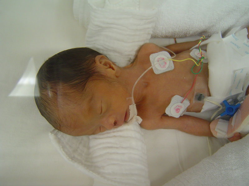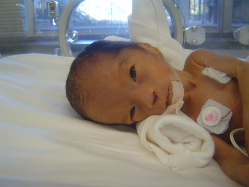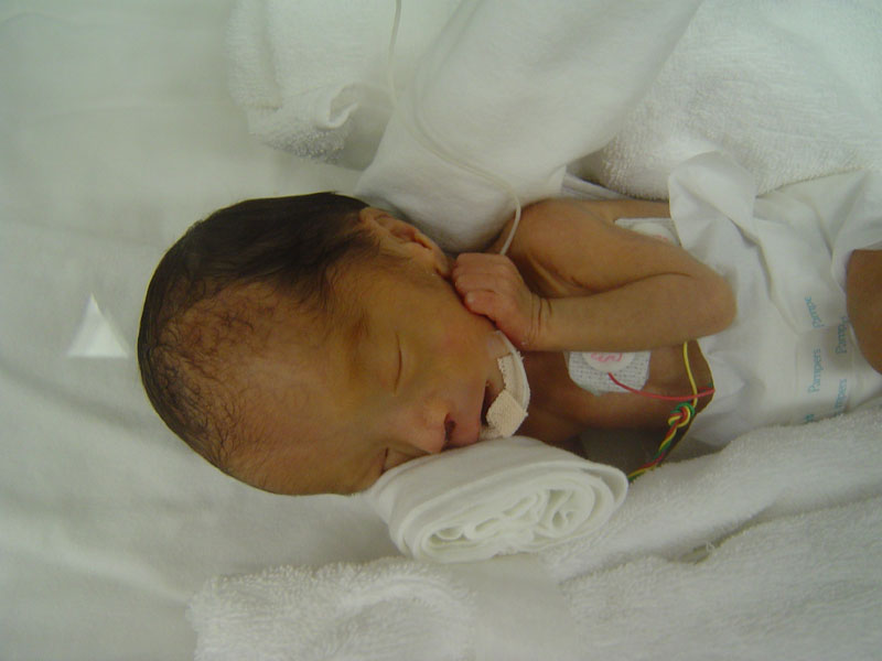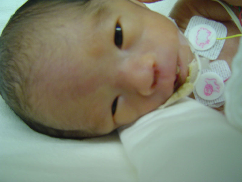 補助呼吸器が完全にとれて1日目です。頑張って自分で呼吸をしているようです。母乳は、午後から4ccに増え、お腹への収まりも良いそうです。尿量が乏しいためにラシックスを投与中。お顔は、お猿さんみたい(ダディ談)です。