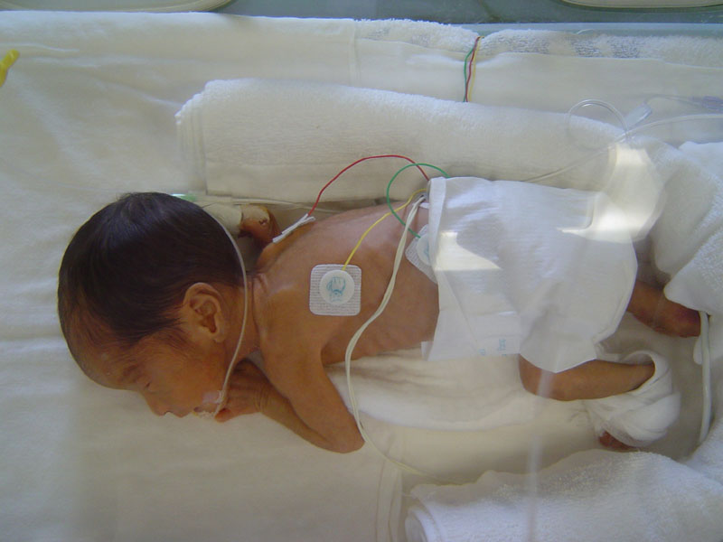 心なしか今日は、黄疸気味。実際、観察記録にも「紅黄色」と、記載されてる。昨日の今日なので心電図が気になる。昨日より安定してないように見える。顔色とも相まって、しゃちょうも嬢ちゃんも気にかかってしまう。11日に較べると顔がコケて見えるのは、むくみがとれたせい・・・だと良いな。母乳は8ccに。オメメをぱっちり開けて、何処か見てるふう。