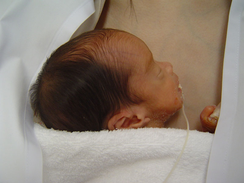 3日連続のカンガルーケア。リクライニングシートに座ってちびまめをだっこするママも手慣れたものです。今日は、右のオッパイにほっぺを載せていつもより更に気持ち良さげ。両方の脚が凄くゴソゴソしてたらしい(ママ談)左手が、しっかり乳首を握ってたのは内緒です。